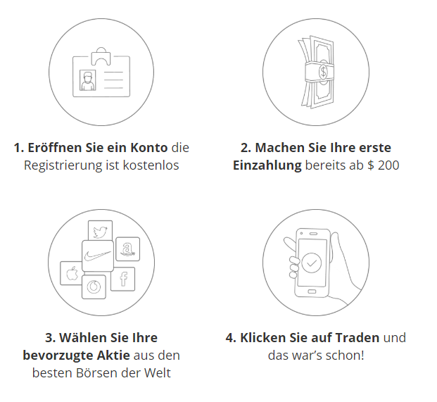 Die Kontoeröffnung bei eToro ist einfach gestaltet und schnell erledigt. Bei der Registrierung müssen Neukunden lediglich einen Namen, eine Telefonnummer, Nutzernamen und ein Passwort angeben. Das Einzahlen von Geld ist erst dann nötig, wenn das Konto verifiziert werden soll. Bis dahin können sich Neukunden mit der Webseite vertraut machen. Bei der Verifizierung müssen Neulinge zunächst einen Fragebogen ausfüllen. Die Fragen handeln zumeist davon, welche Erfahrungen der Kunde bereits mit dem Trading gemacht hat. Die Verifizierung ist mit der Eingabe eines Aktivierungscodes abgeschlossen, welcher an die Telefonnummer versandt wird. Außerdem ladet der Nutzer eine Kopie seines Ausweises und einen Adressnachweis hoch.