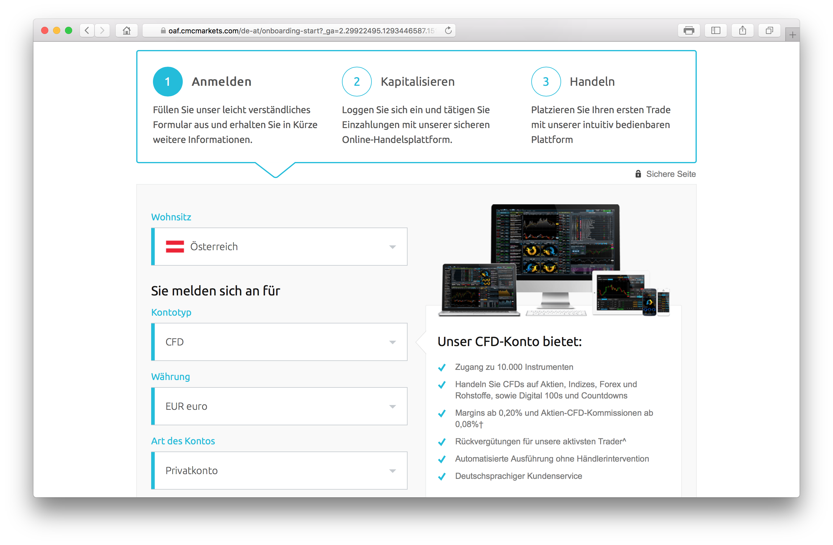 Die Leistungen und Konditionen dieser Plattform überzeugen. Eine Mindesteinlage ist nicht erforderlich. Dadurch entstehen für Kleinanleger keine hohen Einstiegshürden. Durch das Demokonto kann ein Anfänger hier die ersten Schritte ohne Risiko erlernen und somit Praxiserfahrung sammeln. Es stehen eine Vielzahl von Handelsmöglichkeiten zur Verfügung. Aufgrund der guten Konditionen finden Sie den Broker auf Platz 6 unseres Tests. Der CMC Markets, AVATrade und Admiral Markets Test haben etwas weniger überzeugt.