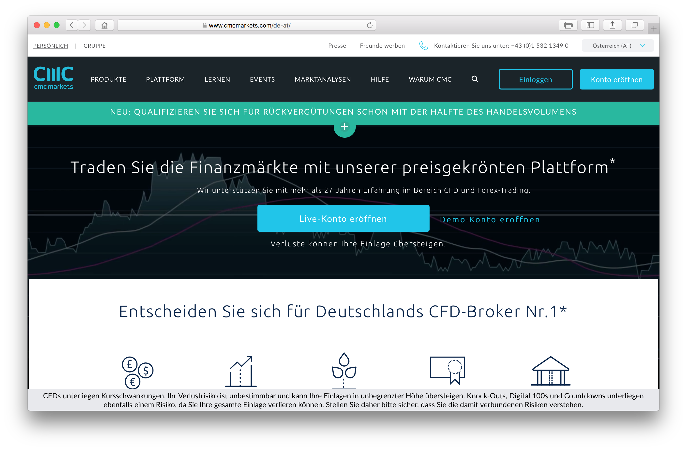 CMC Markets wurde 1989 von Herrn Peter Cruddas aus London gegründet. Dieser Devisenbroker ist heutzutage weltweit einer der führenden Anbieter von CFDs (Contracts of Difference). Im Laufe eines Jahres werden über diese Handelsplattform von deren Kunden ungefähr 30 Millionen Transaktionen abgewickelt. Die Plattform bietet Tradern und Anlegern die Möglichkeit, über deren Online-Handelsplattform „Next Generation“ zu traden und nimmt in Deutschland, wenn man die Kundenanzahl zugrunde liegt, die führende Position ein. Der Sitz in Deutschland befindet sich in Frankfurt als Zweigniederlassung des Hauptsitzes in London. Die Unternehmensgruppe verfügt über Büros als Niederlassungen u.a. in Kanada, Deutschland, Singapur und Australien.