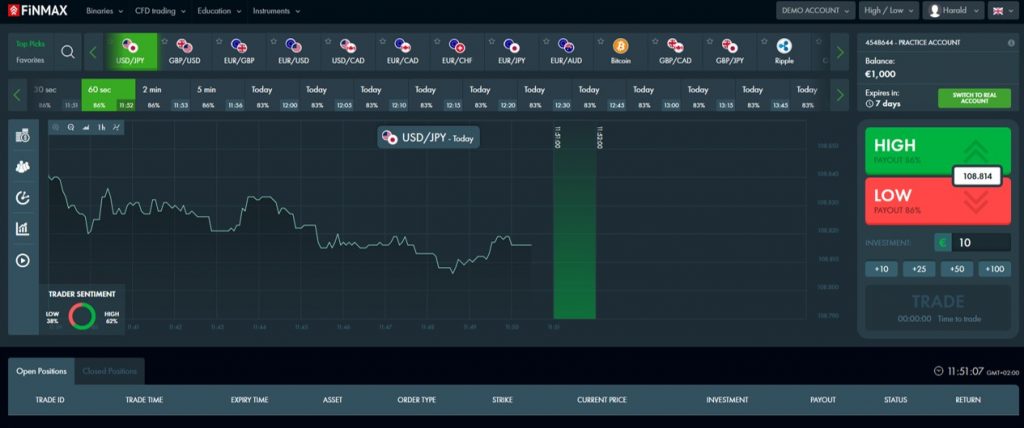 Um vor den ersten Trades noch einige Finmax Erfahrungen zu sammeln, bietet sich für die Anleger die Chance, ein Demokonto zu eröffnen. Dieses hält die Gelegenheit bereit, den Handel ohne den Einsatz echten Geldes zu simulieren. Der eine oder andere anfängliche Verlust, der aus der mangelnden Erfahrung hätte resultieren können, lässt sich auf diese Weise abfedern. Im Demokonto von Finmax steht ein fiktiver Betrag zur Verfügung, der in Binäre Optionen investiert werden kann.